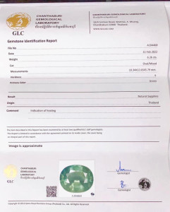 ฟรีใบเซอร์เล่มใหญ่ 4.15กะรัต พลอยเขียวส่อง จันทบุร...